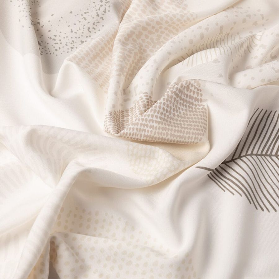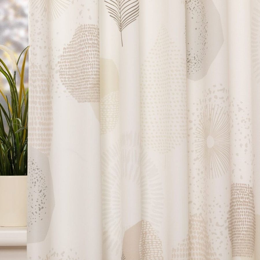 Zeer soepele fijn geweven gordijnstof met een vrolijke Scandinavische print. De stof bestaat voor een gedeelte uit gerecyclede garens en is op een waterbesparende manier geprint. Deze stof is Oeko-Tex gecertificeerd.