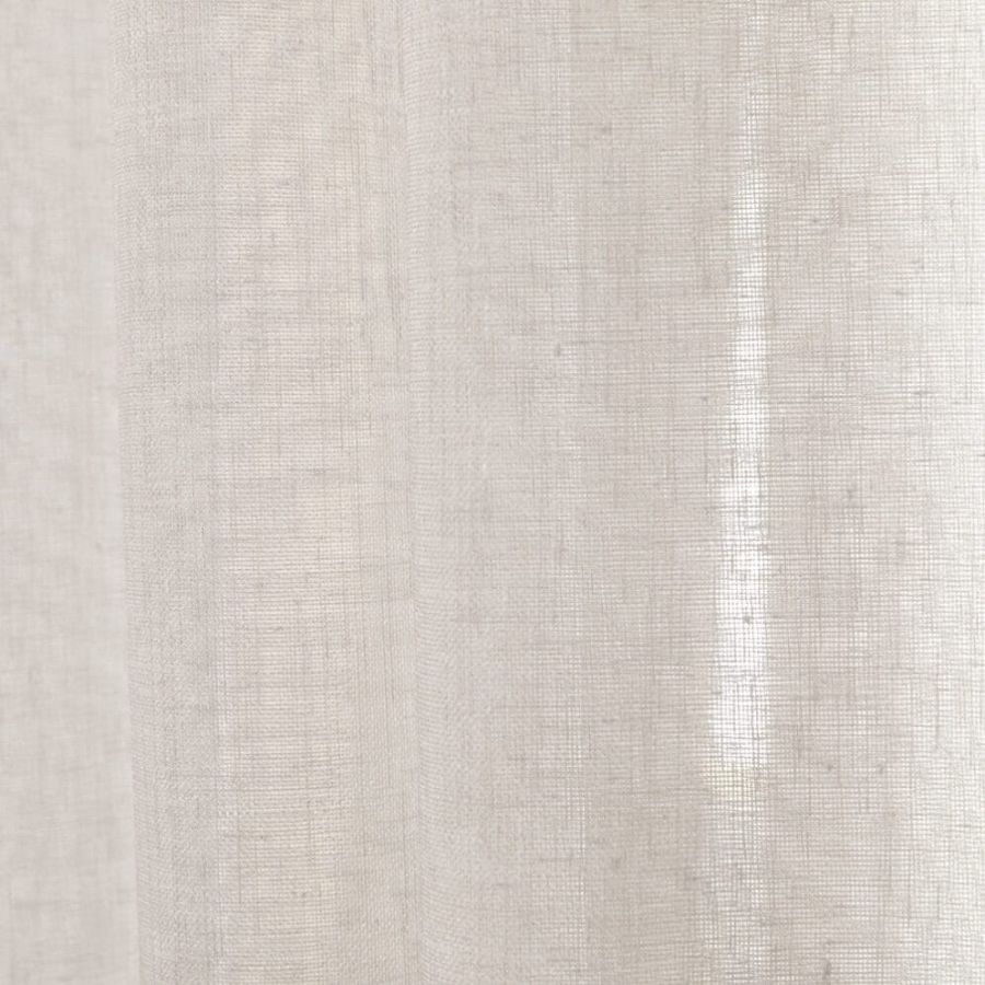 Open geweven vitrage met een natuurlijk ogende linnenlook. De stof is kamerhoog zodat in de confectie geen naden zichtbaar zullen zijn. Aan de onderzijde van de stof is een verzwaringskoord gemaakt, zodat deze prachtig valt en er geen zoom in hoeft.