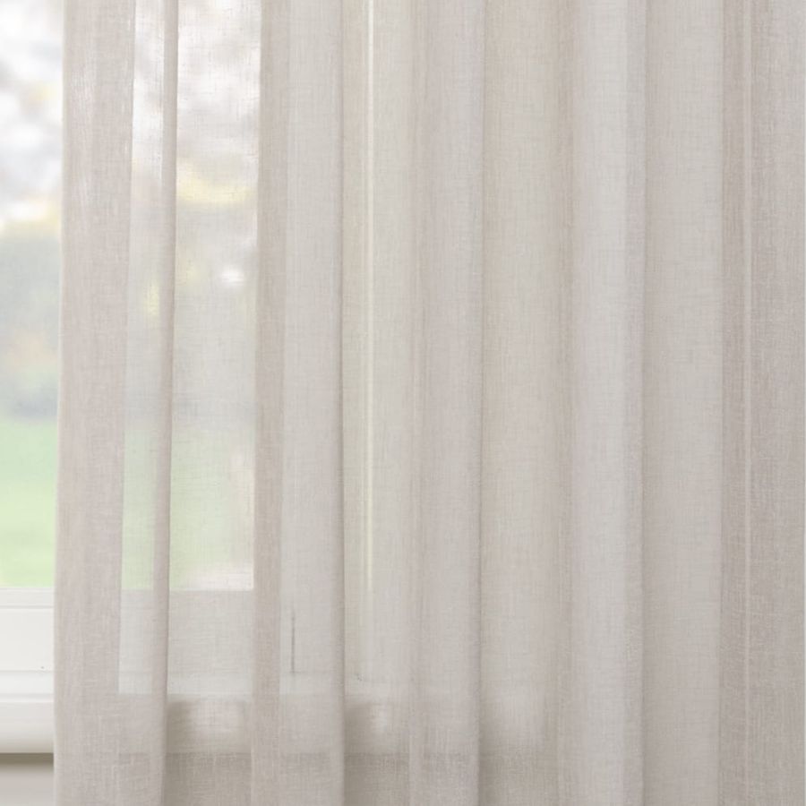 Open geweven vitrage met een natuurlijk ogende linnenlook. De stof is kamerhoog zodat in de confectie geen naden zichtbaar zullen zijn. Aan de onderzijde van de stof is een verzwaringskoord gemaakt, zodat deze prachtig valt en er geen zoom in hoeft.