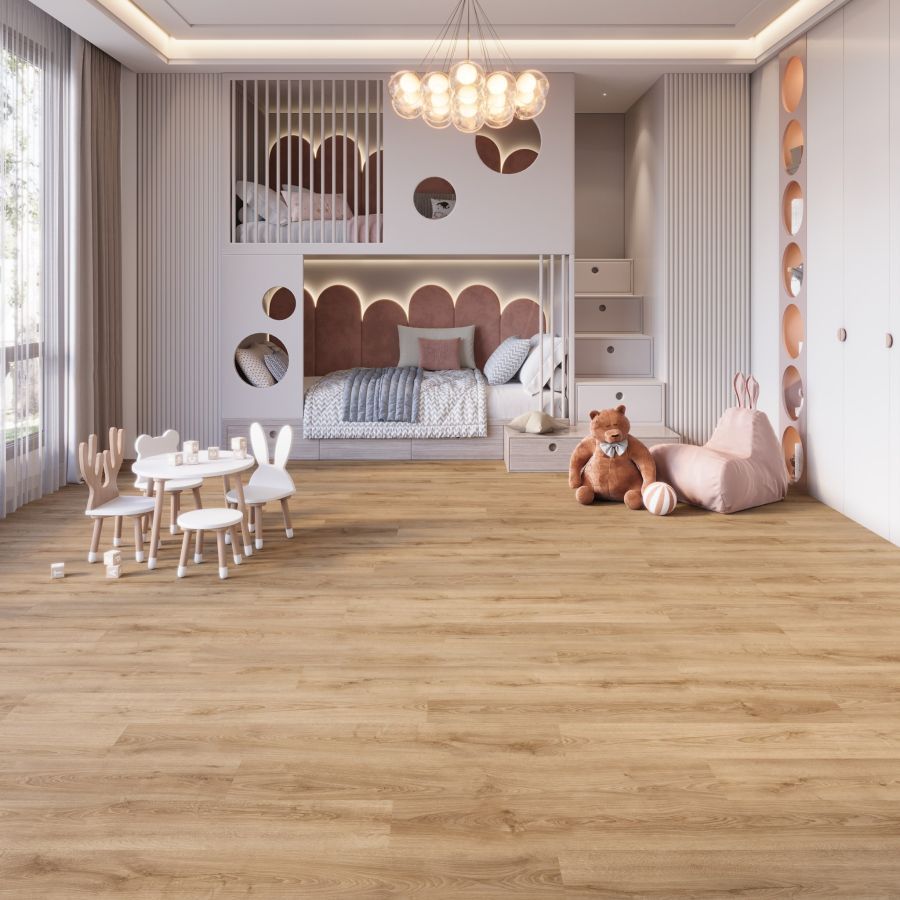 De kleur Cognac Oak kenmerkt zich door een rijke, warme bruintint met subtiele nerven en een lichte houtstructuur.Met een toplaag van 0,55 mm is de Cognac Oak PVC-vloer uitermate bestand tegen slijtage, krassen en intensief gebruik. Deze vloer past perfect bij klassieke, landelijke én moderne interieurs.