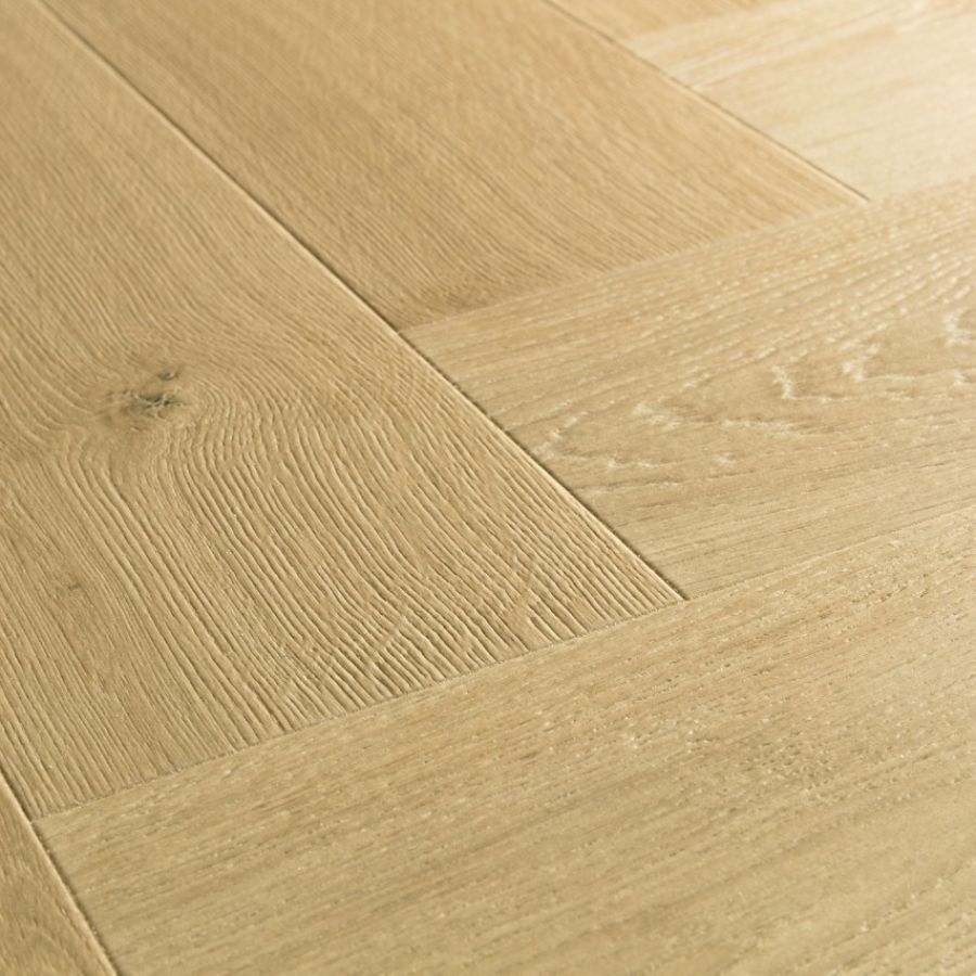 Quick-Step heeft de juiste vloer voor elk interieur. Quick-Step Impressive Design is een collectie laminaatvloeren in visgraat motief met een buitengewoon natuurlijke aanblik en gevoel. De authentieke houtnerven van de planken worden bijvoorbeeld perfect weerspiegeld in de voegen van de vloer. En dat is niet alles: dankzij een unieke waterafstotende 'HydroSeal' coating ogen de Impressive laminaatvloeren niet alleen prachtig, maar zijn ze ook het best tegen water bestand van alle laminaatvloeren die ooit zijn gemaakt.