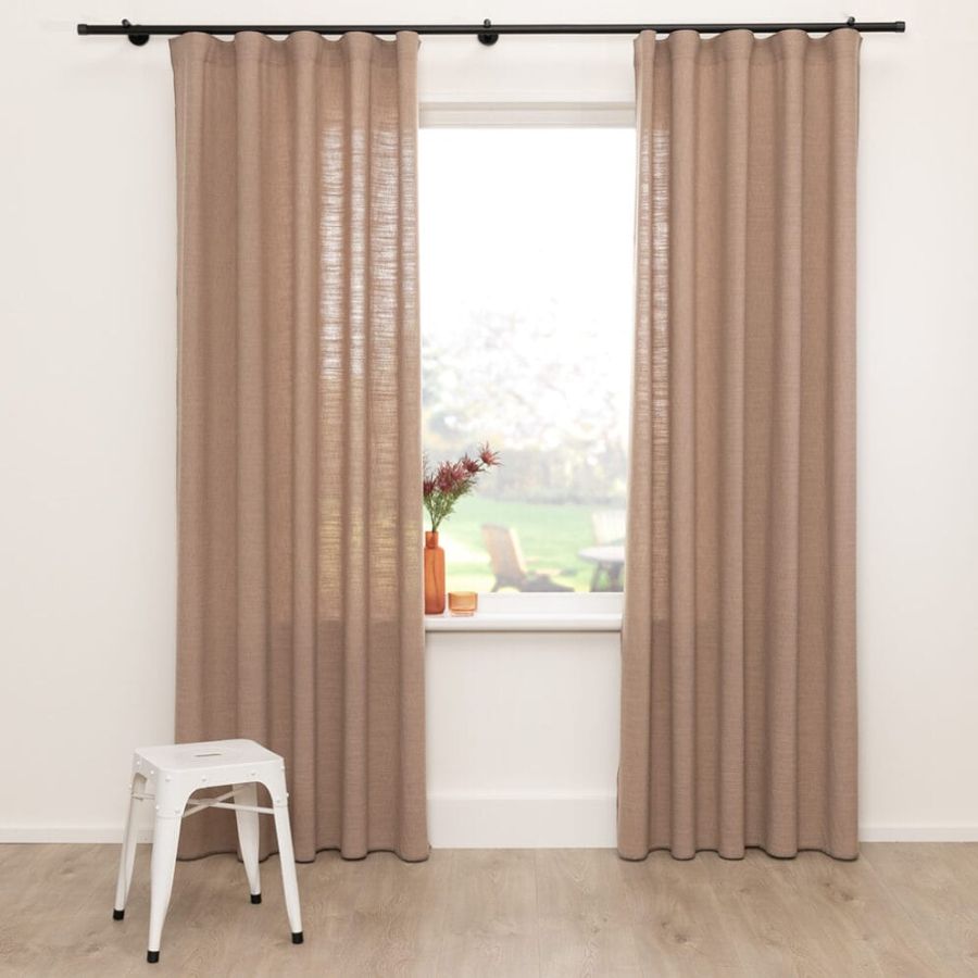 Ramie is een soepel vallende kamerhoge stof met een natuurlijke linnen uitstraling is. Een prachtig uni gordijn wat door zijn structuur ook een stoer en rijk uiterlijk heeft. Dit duurzame gordijn is verkrijgbaar in 10 verschillende kleuren, zowel in een mooie neutraal tonen als in aardse en frisse kleuren. De stof is op alle manieren goed te confectioneren, op een happy wave komt die goed tot zijn recht maar om de stoere uitstraling te benadrukken, hangt de stof ook prachtig op ringen. De stof is GRS en Oeko-tex gecertificeerd en bevat 15 petflessen per m2.